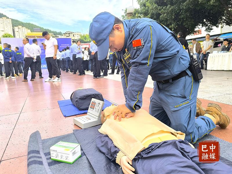 现场主办单位还进行了应急救援装备展示,让群众了解现代化救援设备的功能与作用,蓝天救援队、公益救援队的专业队员进行了心肺复苏等急救技能现场演示。