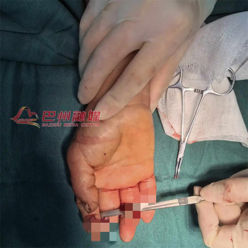 前段时间,市民小汪(化名)在家切割猪草时右手不慎受伤,到巴中市中医医院就诊,被诊断为“右手切割伤”,骨伤科以急诊收治入院。经过术前仔细诊查及讨论,决定实行“右手清创术”“右环指断指再植术”等手术。来自浙江义乌的援川医疗专家何华斌医生临危受命,成功主刀完成了这场高难度手术。