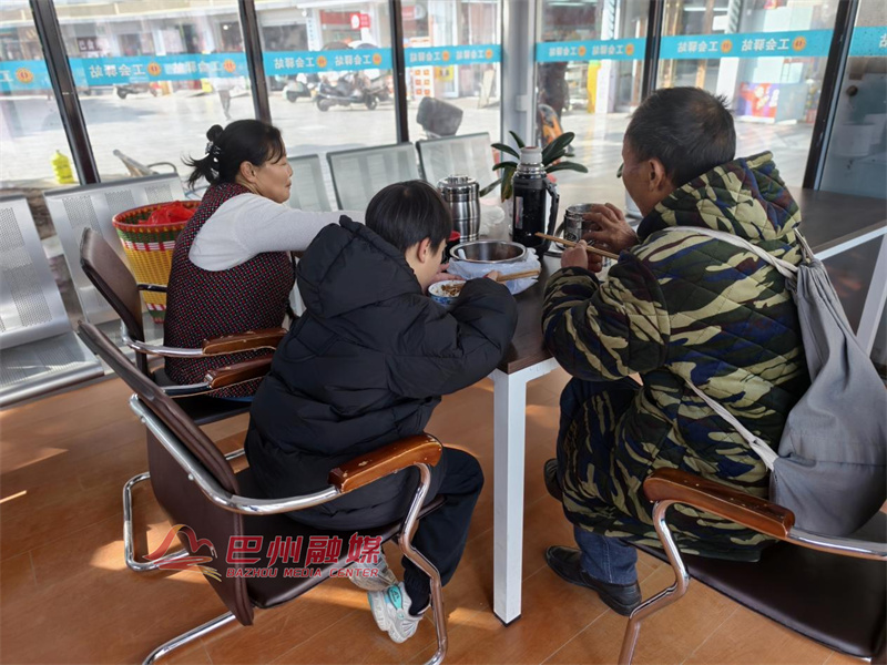 “这个工会驿站修得好,方便我们老百姓休息,我们也可以给孙子辅导作业,陪他在这里吃饭。”刘翠花老人朴实的言语里满是欣慰,对她而言,这处虽不算宽敞的空间,却是一个能让祖孙三人安心吃饭、孩子安静学习、老人得以歇脚的“幸福驿站”。