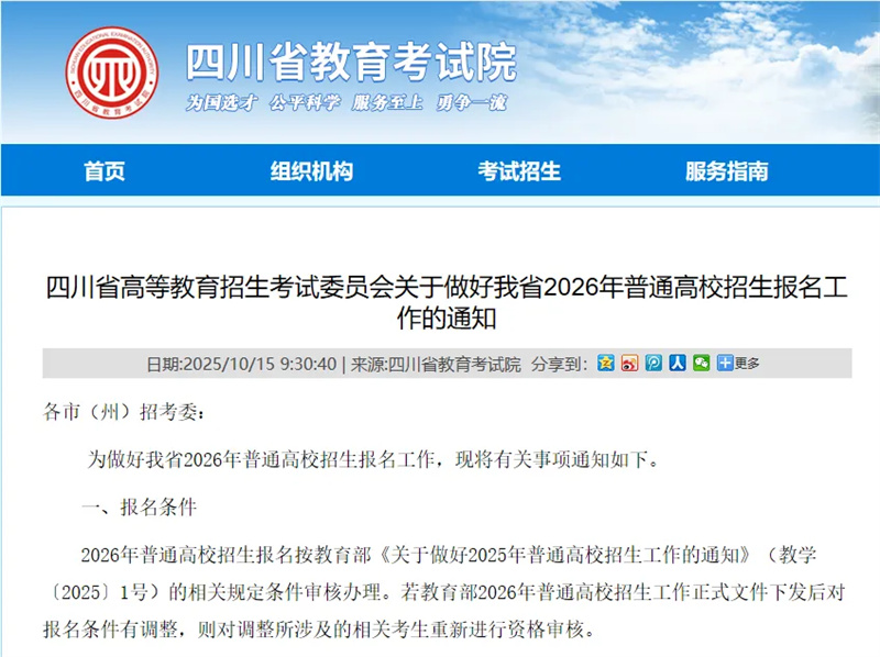 目前,多地高考报名工作已逐步展开,其中吉林省为较早启动报名的省份之一,其2026年高考报名分为三个阶段:2025年9月15日-10月9日为外省籍及照顾加分等特殊考生资格预审时间;2025年10月10日-10月15日为网上报名时间;现场确认需在2025年10月20日前完成。
