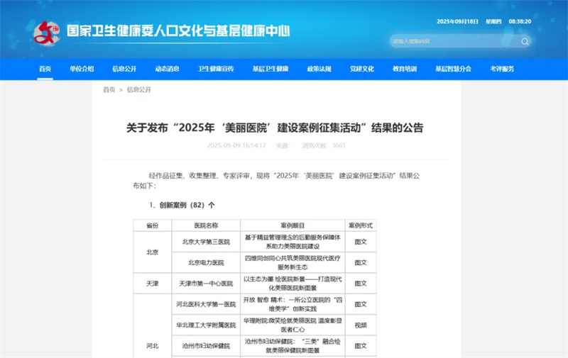 近日,由国家卫生健康委人口文化与基层健康中心组织的“2025年‘美丽医院’建设案例征集活动”结果正式公布。