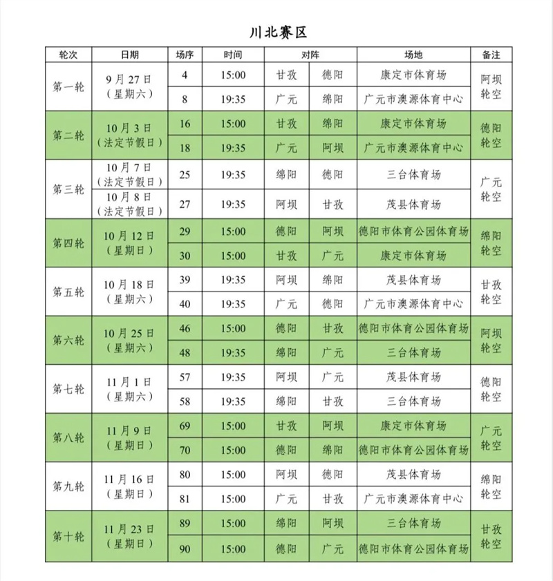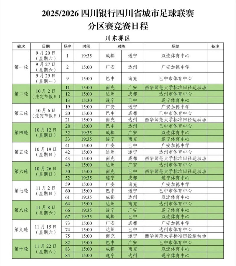 【2025-09-12】【来源: 四川观察 】【点击举报】 举报链接: 举报标题: 举报人电话: 举报人类型: 虚假问题 政治问题 错敏信息 举报内容: 记者9月11日从四川省足球协会获悉,“川超”开赛在即,分区赛阶段4大赛区的竞赛日程正式出炉。9月20日19:35,“川超”揭幕战将在成都双流体育中心打响,成都队将坐镇主场迎战遂宁队。
