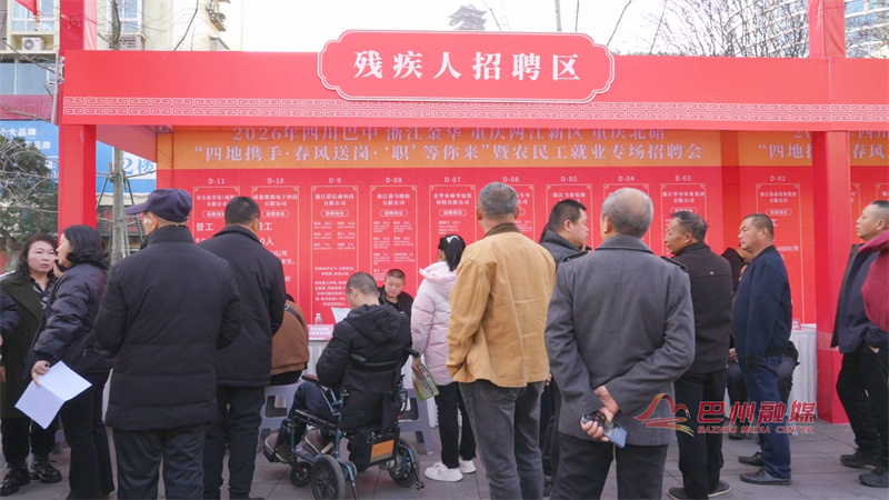 春意渐浓,就业送暖。2月24日,一场跨越川、浙、渝三地的“就业春风”吹进革命老区——2026年四川巴中、浙江金华、重庆两江新区、重庆北碚“四地携手·春风送岗·‘职’等你来”暨农民工就业专场招聘会在巴中市巴州区火热举行。本次招聘会精准整合四地产业优势与劳动力资源,共吸引142家企业携8000余个岗位现场揽才,为不同年龄、不同技能的求职者铺筑通往梦想的桥梁。