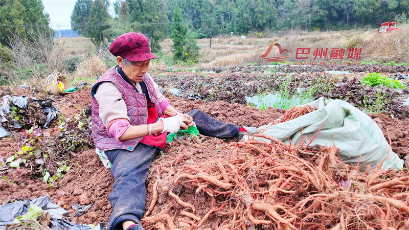 春回大地,万物复苏。2月28日,巴州区水宁寺镇三皇村的中药材种植基地一片繁忙景象。时下正值丹参集中采收期,村民抢抓农时,忙着采挖、分拣,田间地头处处洋溢着丰收的喜悦。这株小小的丹参,正成为当地群众增收致富的“金疙瘩”。