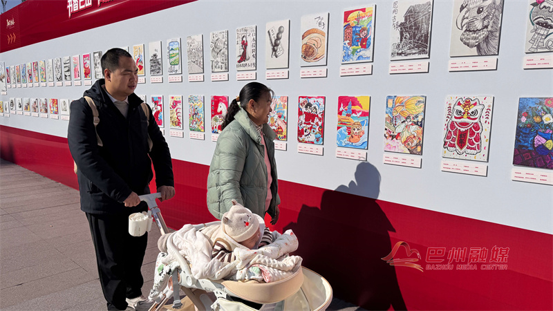 展览现场人气高涨,不少市民扶老携幼前来观展,沉浸在浓厚的文化氛围里。“带着孩子来看展览,既能感受新春气息,又能让他在笔墨书香中亲近传统文化。”市民王女士驻足在一幅描绘巴州风土人情的绘画作品前,一边给孩子讲解一边点赞,“这些活动特别贴心,让我们在家门口就能享受‘文化大餐’。”