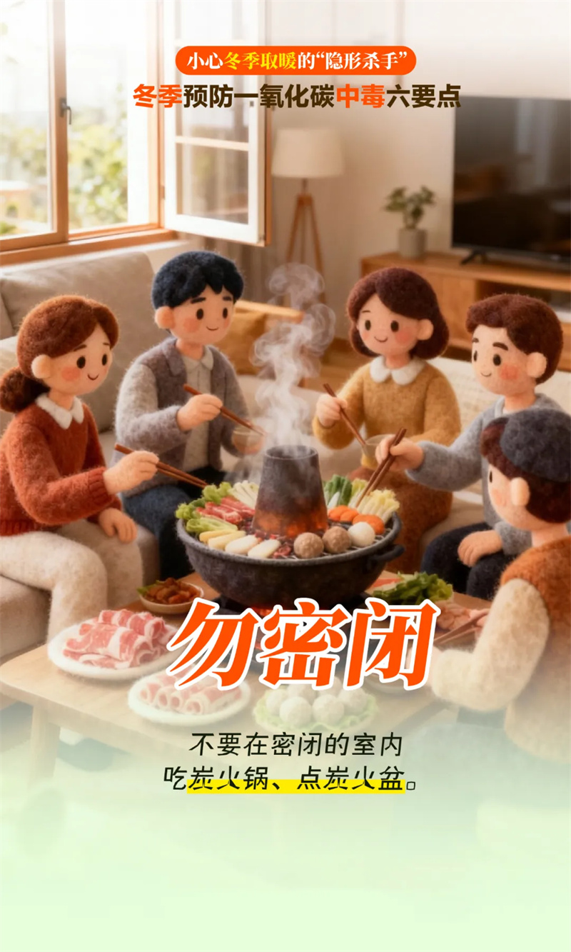 【2026-01-20】【来源: 徐州应急管理 邳州应急管理 】【点击举报】 举报链接: 举报标题: 举报人电话: 举报人类型: 虚假问题 政治问题 错敏信息 举报内容: 冬季严寒 大家在防寒保暖的同时 切记不要在 空间密闭、通风不畅的情况下 烧炭取暖、使用燃气等 这些行为都可能在不知不觉中 导致一氧化碳中毒 如何预防一氧化碳中毒? 这份安全提示请收好! ↓↓↓