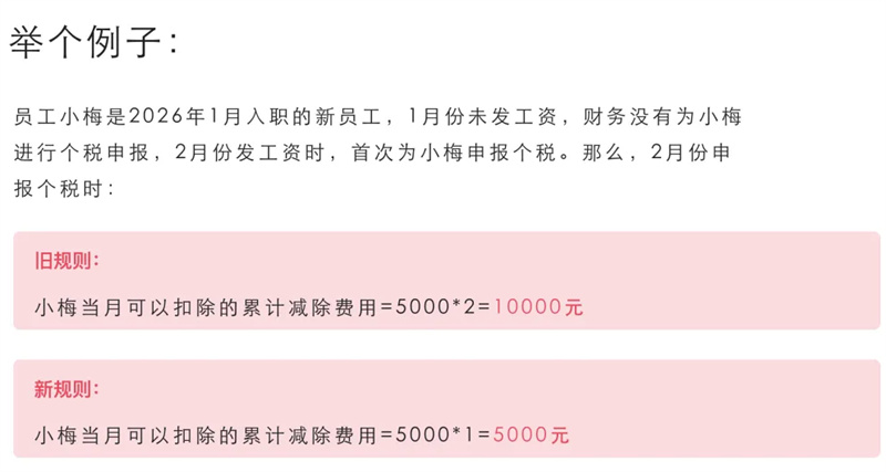 ◆旧规则:按入职月份自动累计减除费用,未申报也不作废。
