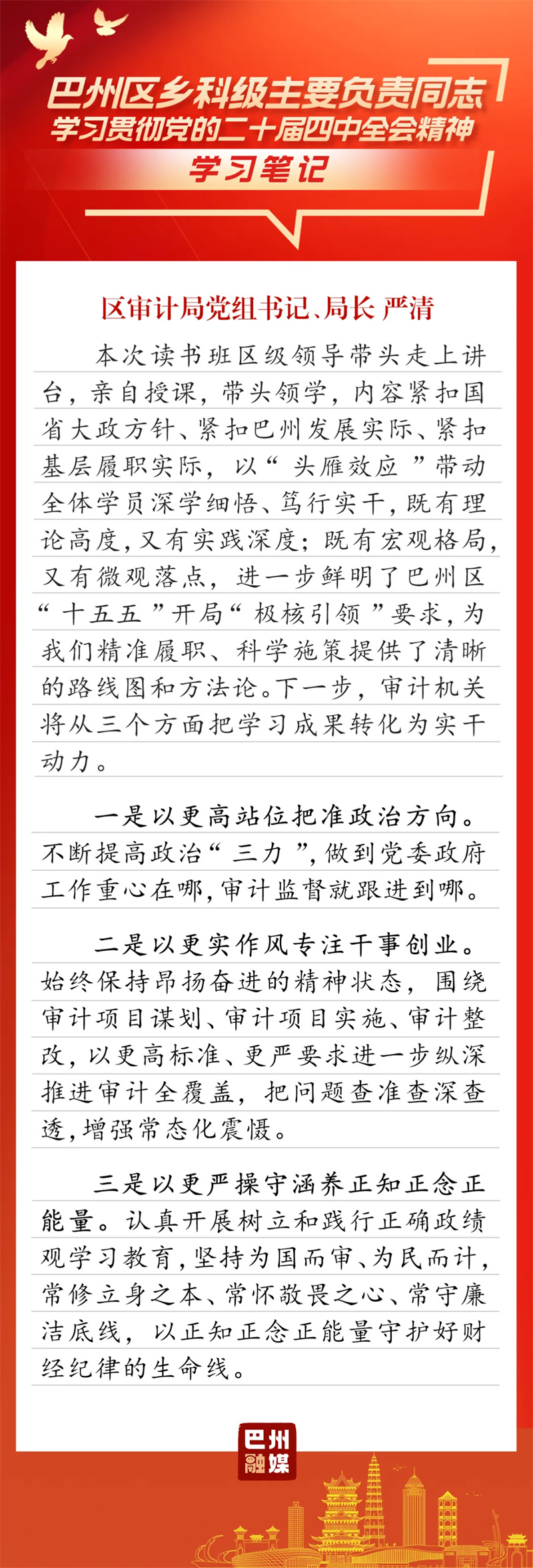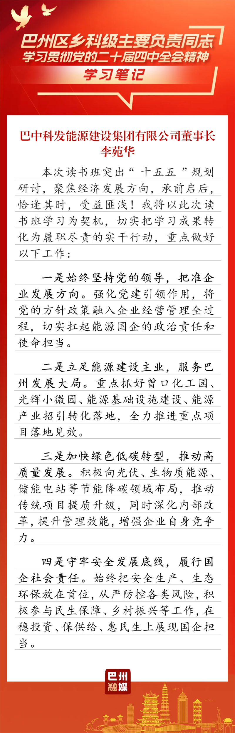 3月19日-22日,巴州区乡科级主要负责同志学习贯彻党的二十届四中全会精神读书班如期举行。整个学习过程将专题辅导、分组研讨和个人自学融为一体,内容安排饱满充实,形式运用灵活多元。学员们深入思考、用心体悟,在交流中碰撞思想、凝聚共识。翻开他们的学习笔记,一起来感受这次读书班的收获与成效吧!