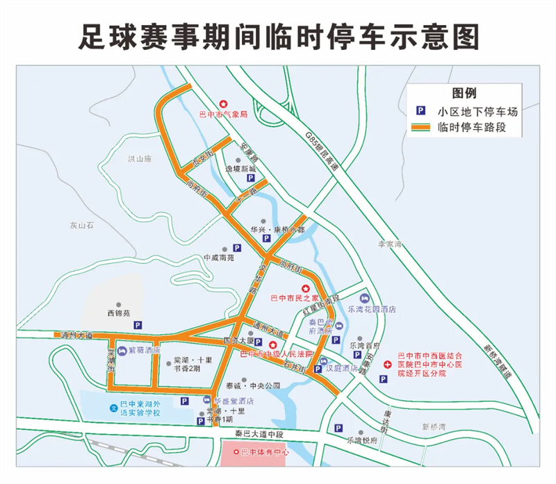 (二)进入管制区域内的所有车辆停放,需要按照指定的临时停车区域分类停放,临时停车区域见《巴中市体育中心临时交通管制区内停车示意图》(附件2),同时要注意遵守现场交警的指挥调度。